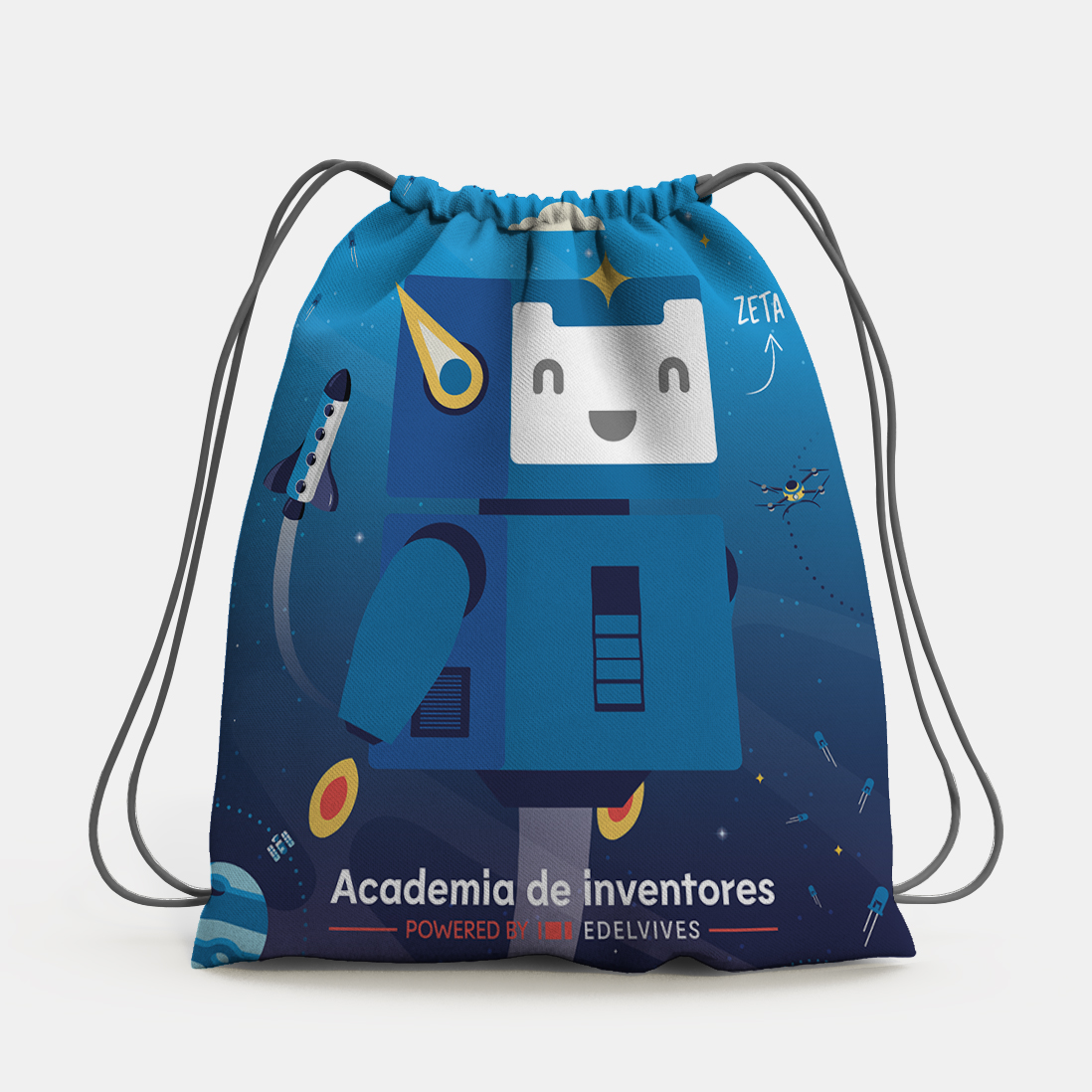 • Mochila serigrafiada: Indispensable para transportar todo lo necesario para ser un inventor.