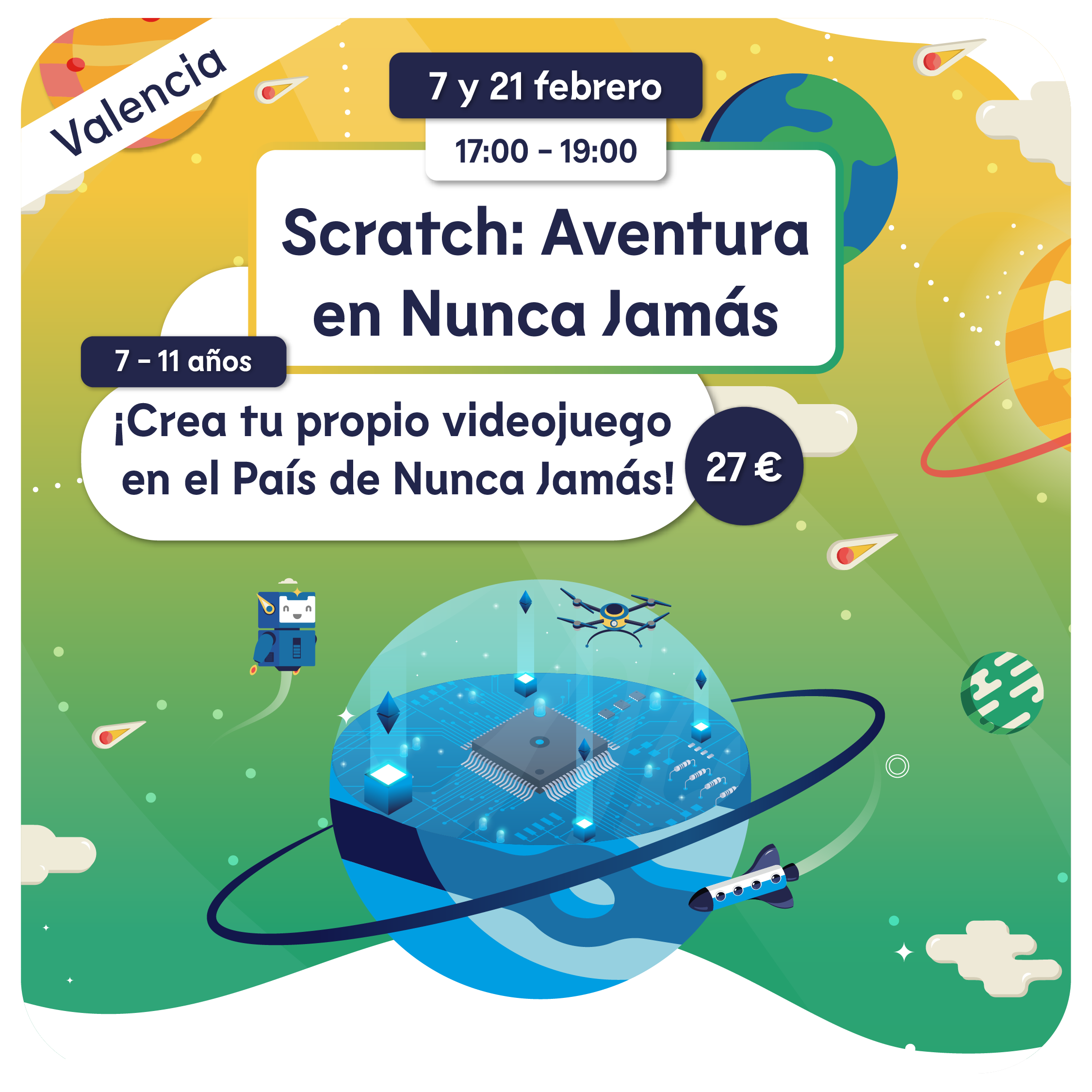 ¿Te imaginas diseñar una aventura mágica junto a Peter Pan y enfrentarte a un temible pirata en un mundo lleno de imaginación? En este taller, niños y niñas se convertirán en verdaderos creadores de videojuegos, dando vida a historias increíbles inspiradas en el fantástico universo del País de Nunca Jamás.